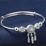 Adjustable bracelet with triple leaf charms made of 925 sterling silver